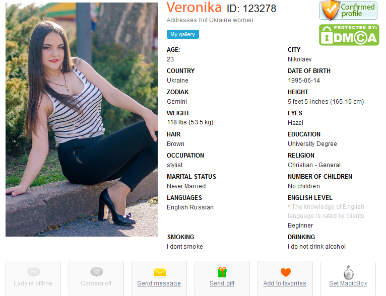 On top of that, the woman’s profile contains additional photos and the list of ways you can get in touch. The communication means range from a text chat and mail exchange to video chat and an opportunity to send her a gift. However, if the member is currently offline, some of those features will not be active.