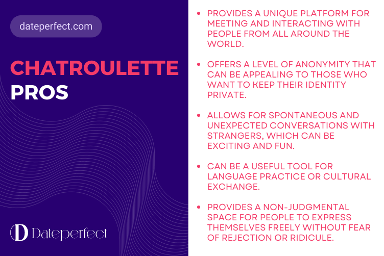 On one hand, Chatroulette allows users to meet people from all over the world and engage in conversations with strangers. This can be a great way to expand one’s social circle and learn about different cultures. Additionally, Chatroulette’s anonymous nature provides users with a sense of freedom and spontaneity that is not typically found on other social platforms.