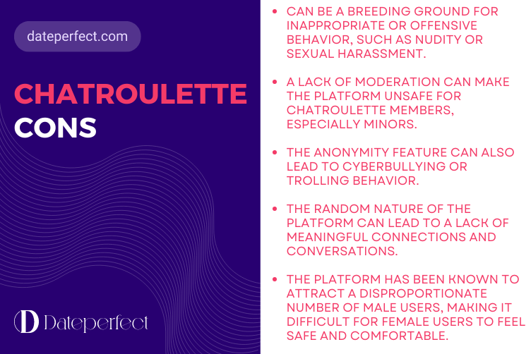 - A lack of moderation can make the platform unsafe for chatroulette members, especially minors.